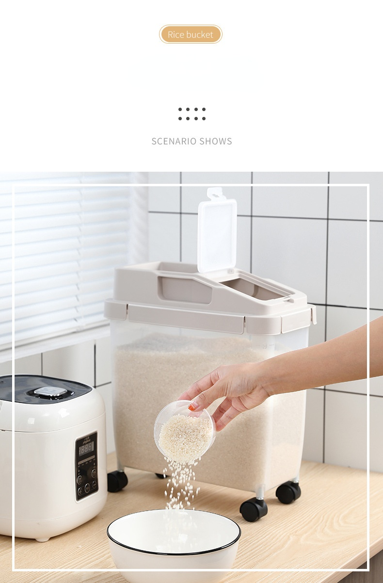 Moisture-proof rice bucket Capacity: 10kg Color:White,Coffe Type: With wheels/Without wheels
