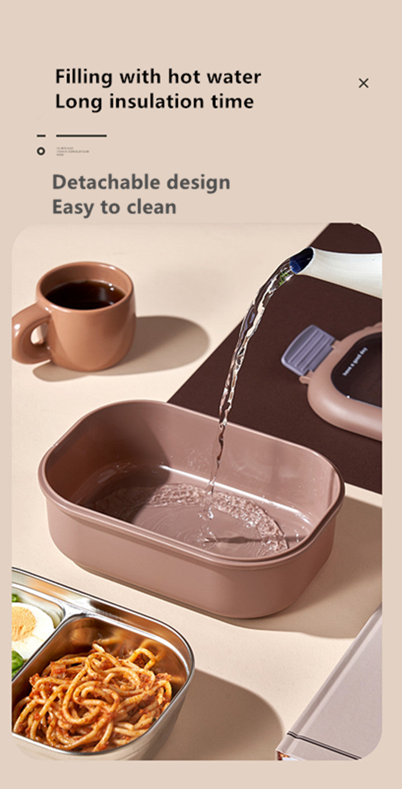 The bottom compartment can add hot water to heat and keep food warm.