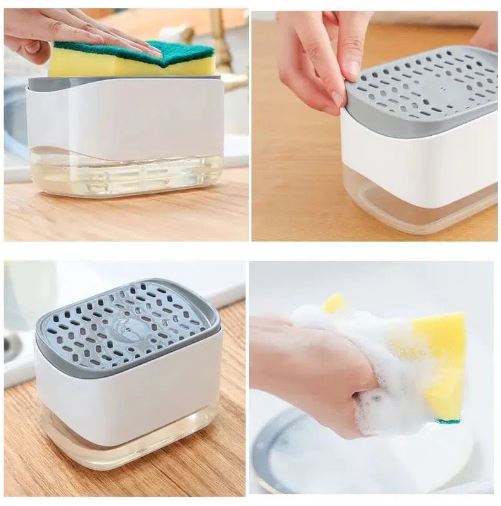 - It dispenses the right amount of soap onto the sponge with each use. It's allows you to wash dishes faster, whilst reducing the space taken up on your sink.