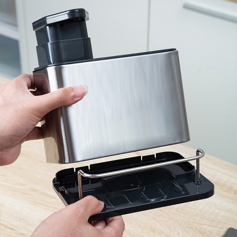 3-In-1 Kitchen Soap Dispenser Sponge Holder Dish Soap Dispenser Stainless Steel