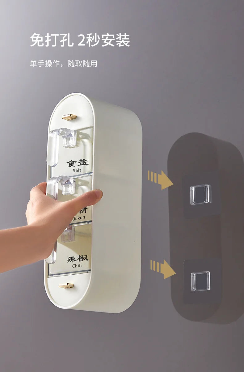 With the main features of this spice box, no punching, sticky and stable without falling off, compartmentalized design, sealed, waterproof, dustproof and moisture-proof, and easy to clean.