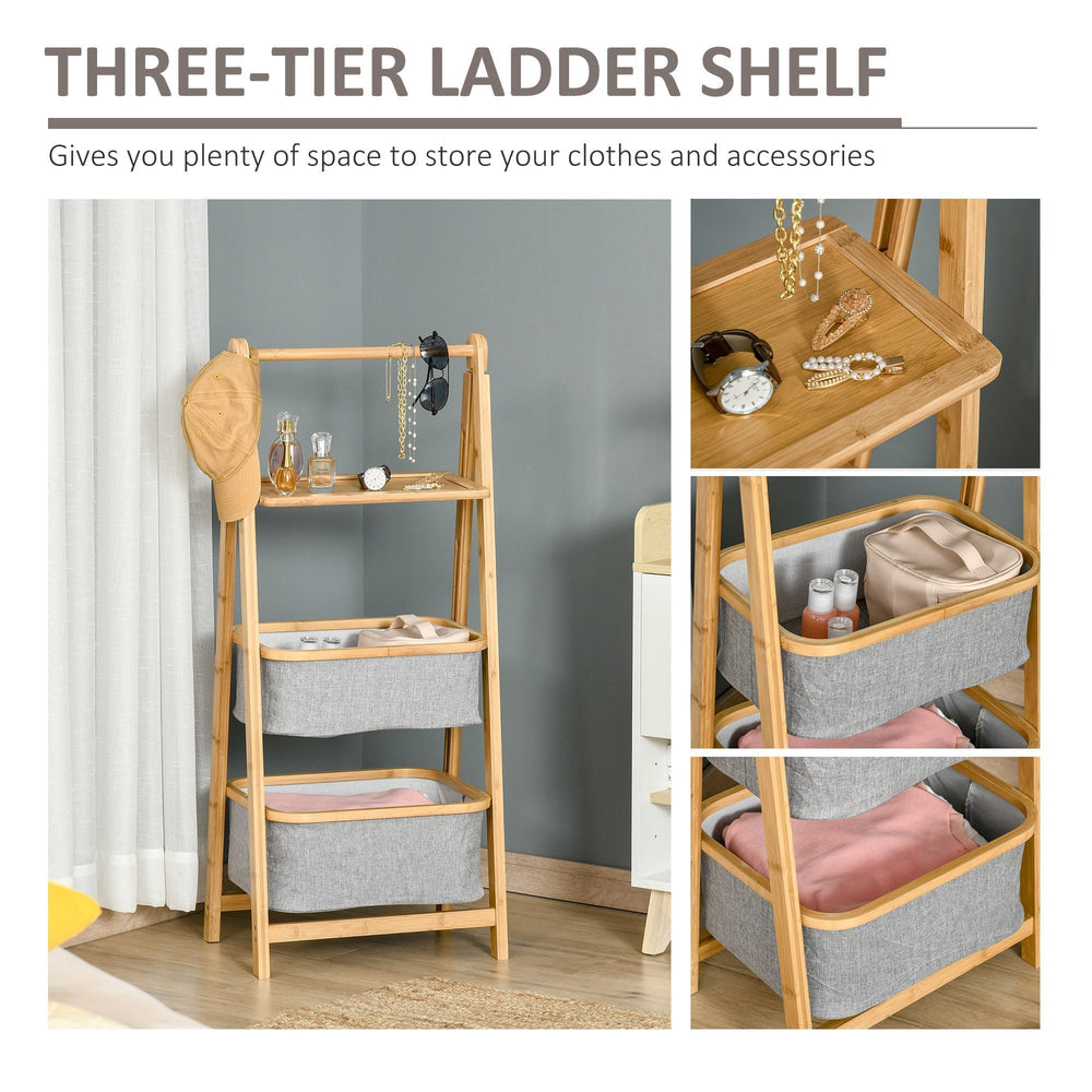 THREE-TIER LADDER SHELF: Gives you plenty of space to store your clothes and accessories and keep your home clean and tidy. Semi-open shelves for easy access.