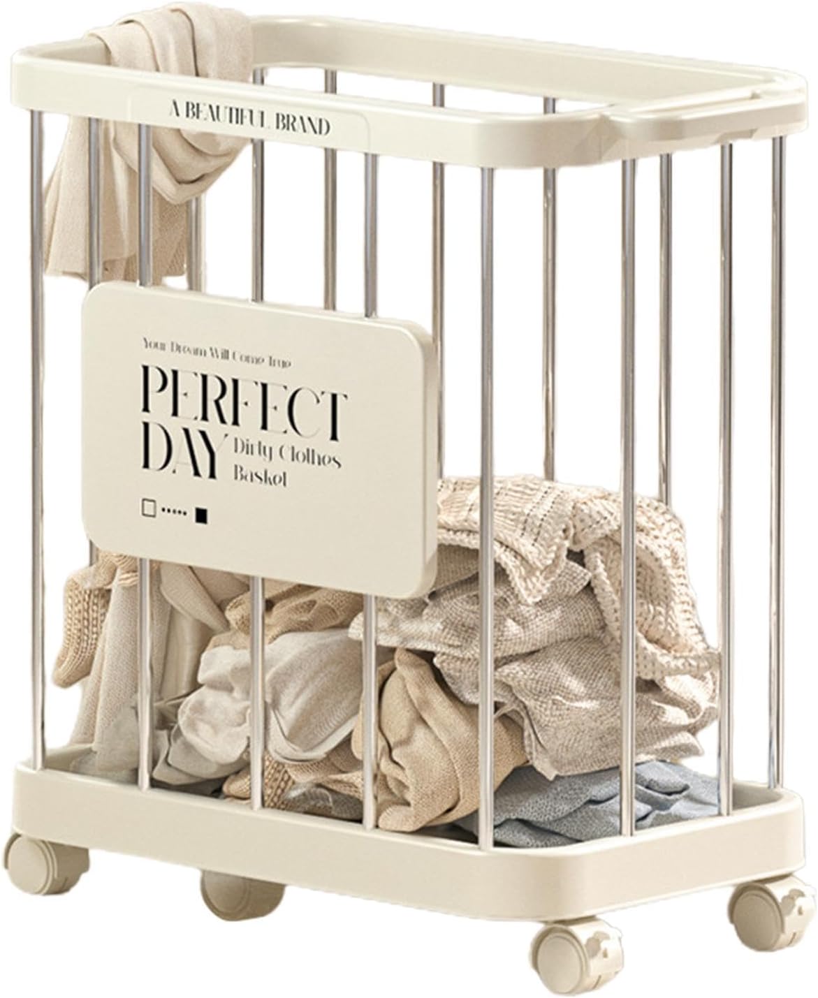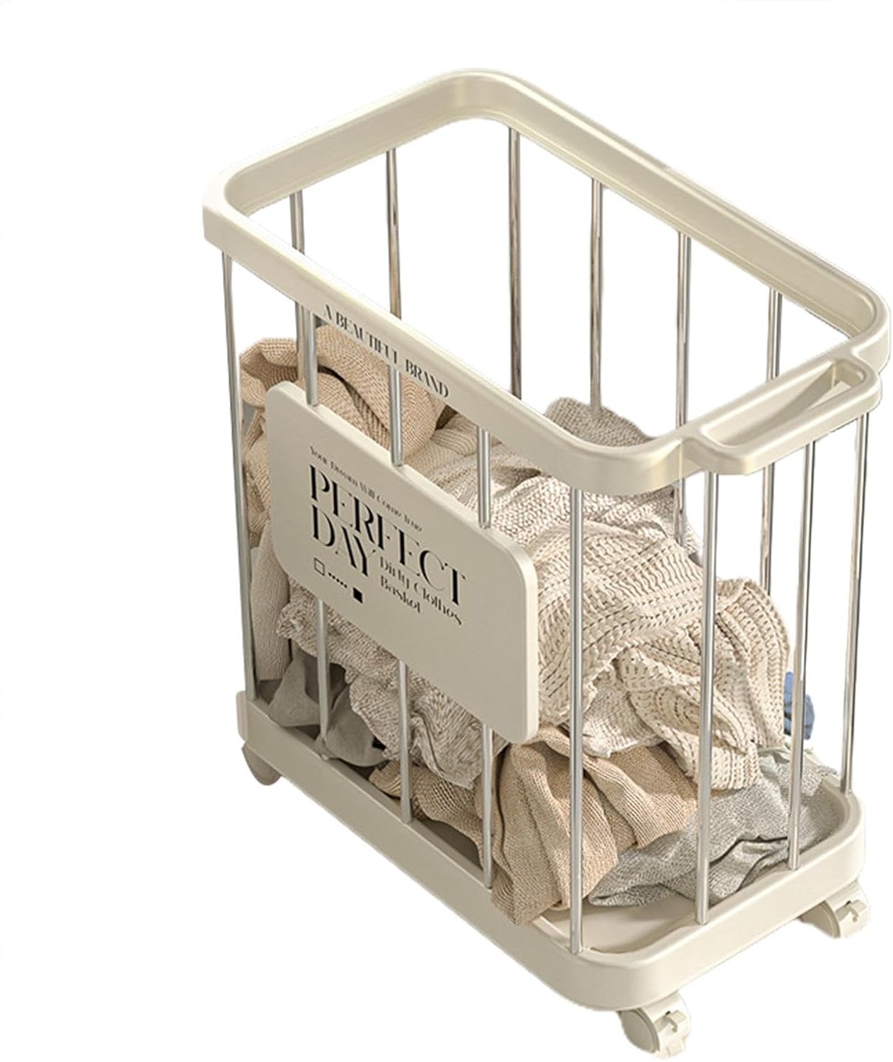 - The four smooth sliding wheels on this laundry basket make it easy to move around, allowing for effortless relocation from room to room.