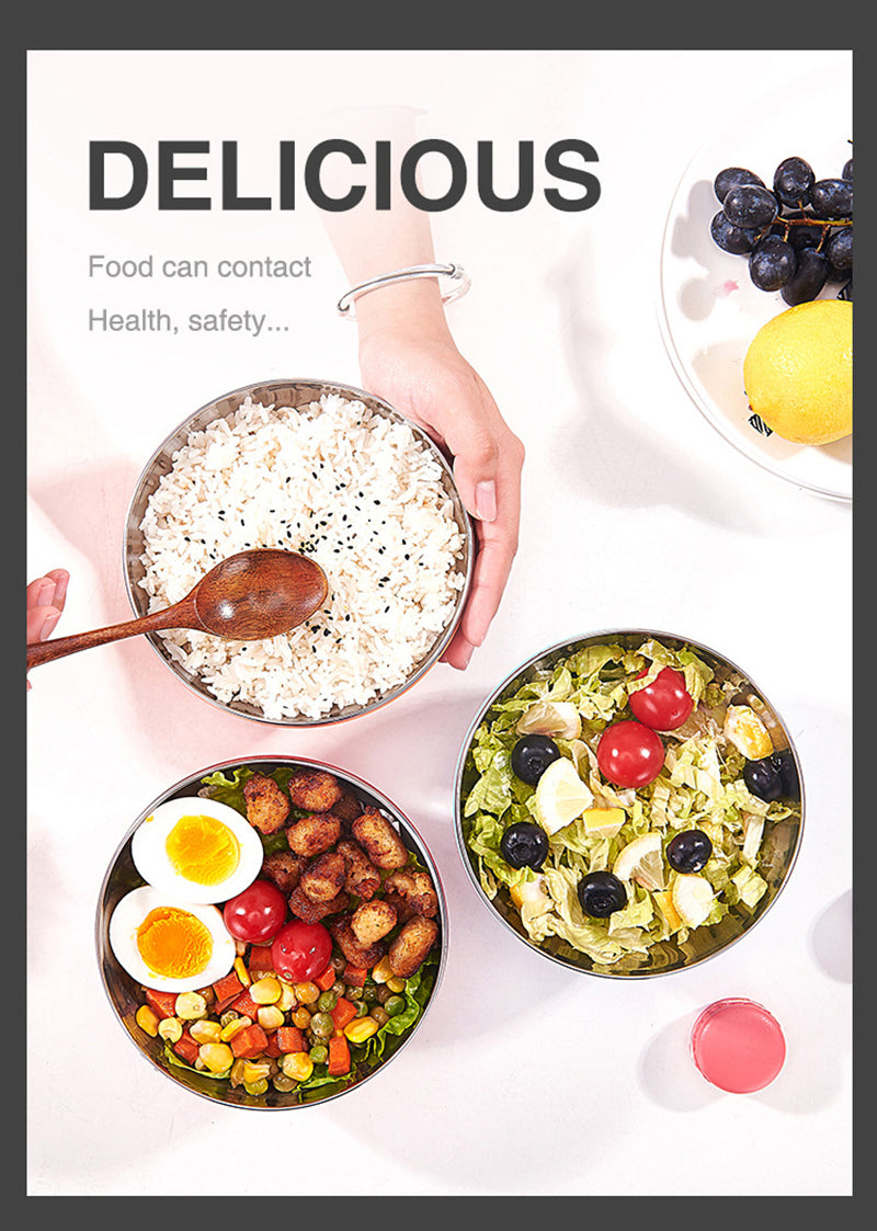 MULTIFUNCTIONAL USE: The colorful double-layer stainless steel bowl can be used to serve a variety of foods, such as salads, soups, staple foods, etc. It is also suitable for fruits and snacks. It can also be used as a container for ice cream and other cold drinks.