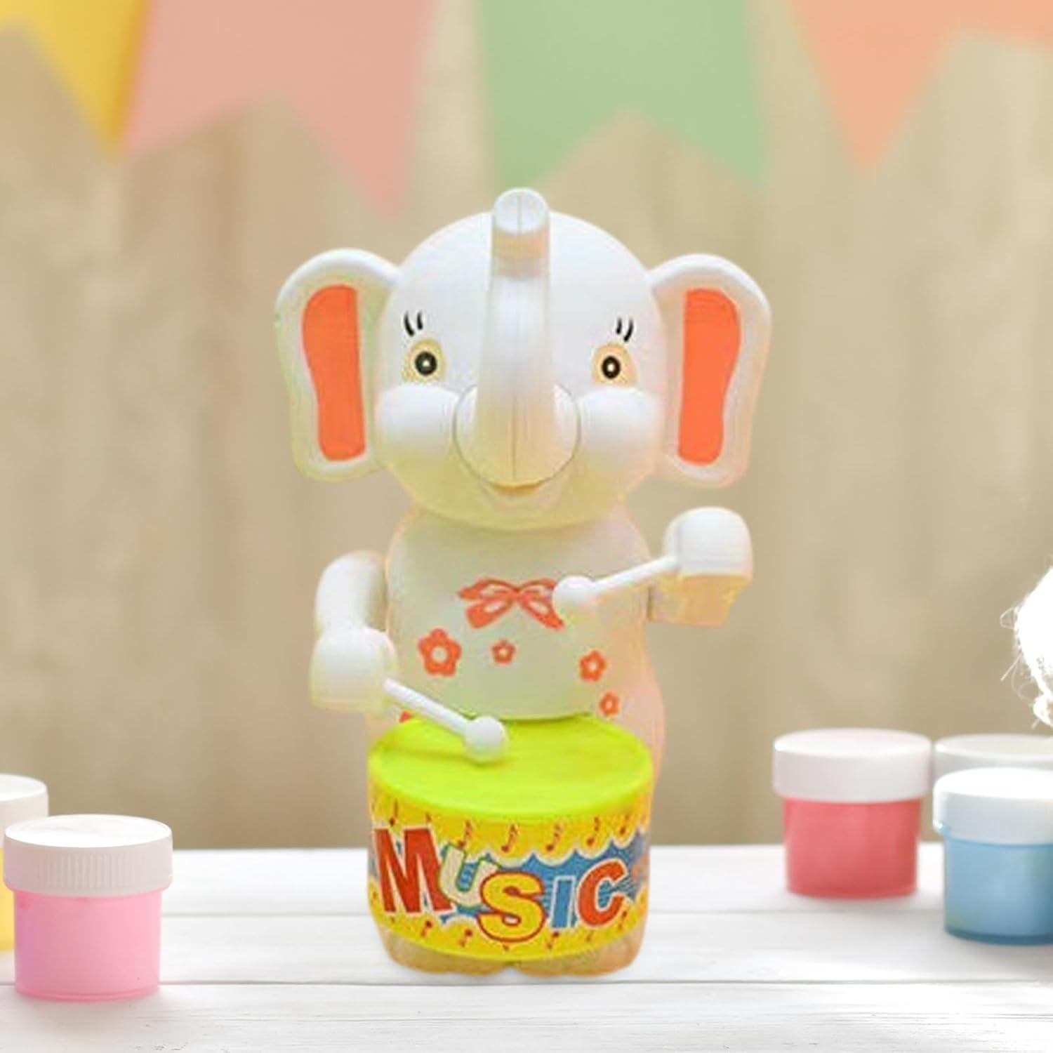 Drumming Toy Clockwork Powered Animal Drum Toy for Kids for 3+ Year Old Kids Elephant