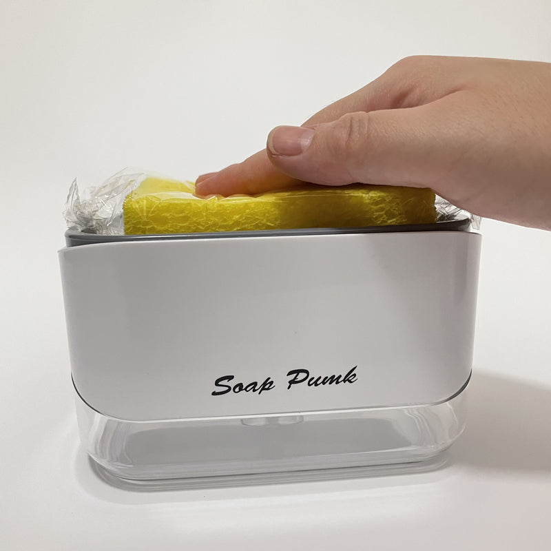 One-button press to discharge the liquid, easy and convenient operation; hollowed out ventilation shelf to make the sponge dry quickly; water-draining storage design, recyclable cleaning sponge leaves excess water when pressed to prevent secondary pollution when the sponge is used; the soap dispenser is detachable , easy to clean.