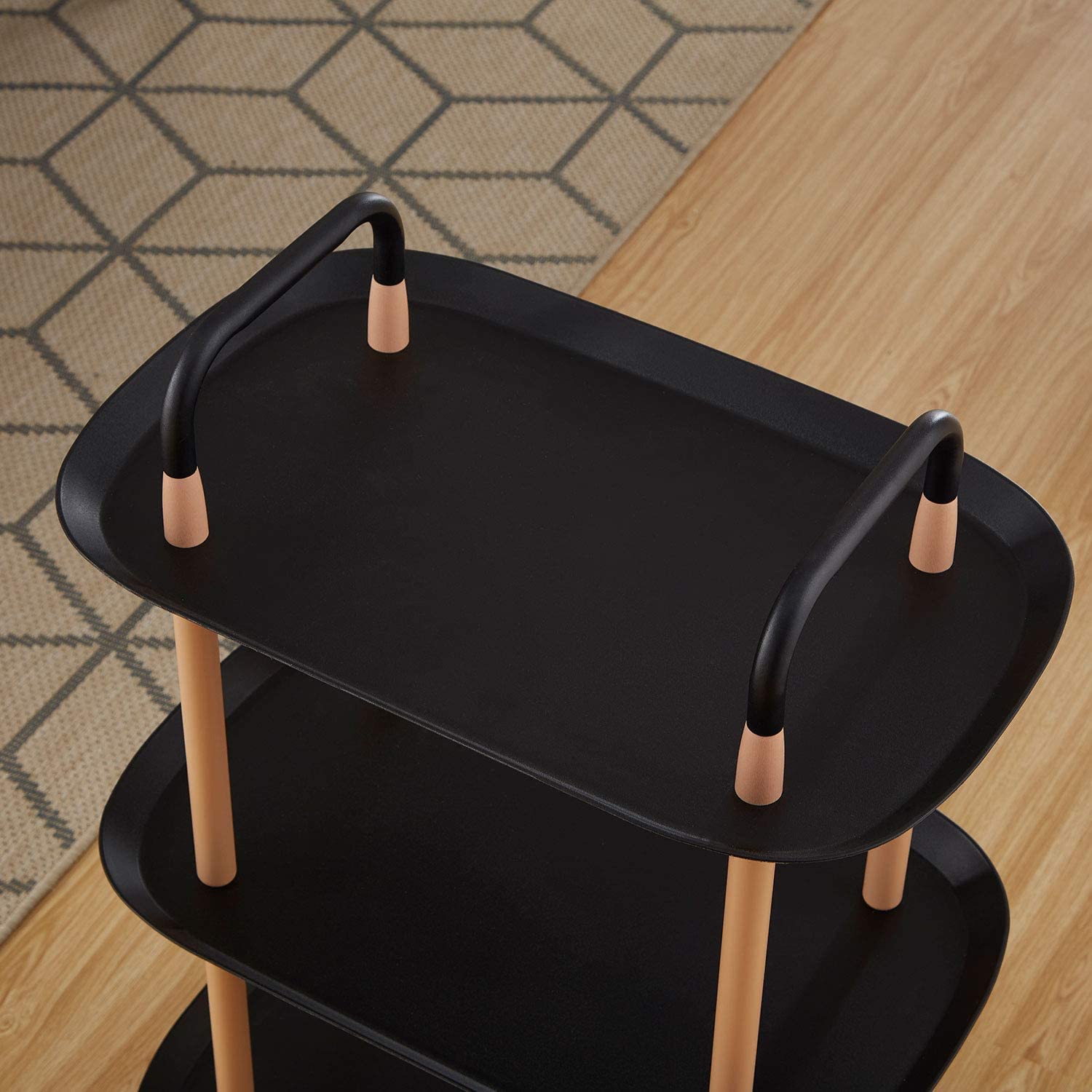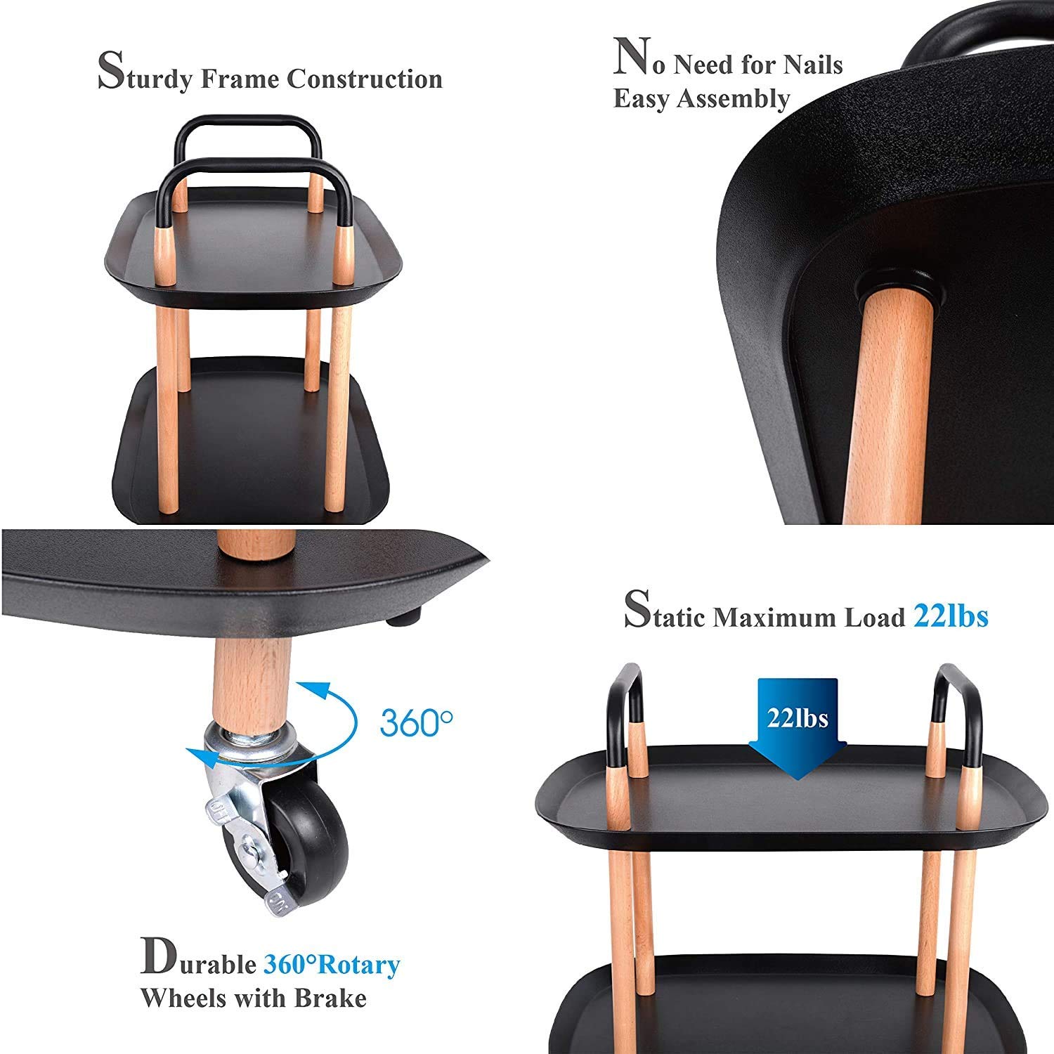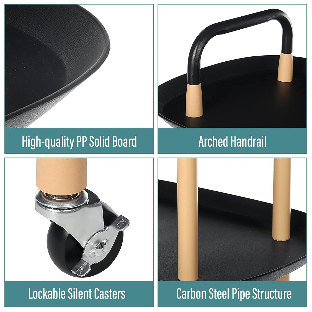 - Easy to Move Around: This Serving Cart is equipped with 4 casters (2 lockable) and handle design make it easy and convenient to keep the trolley cart rolling around. From one place to another around your room or office even when fully loaded while protecting the floor from scratches, making your life easier.
