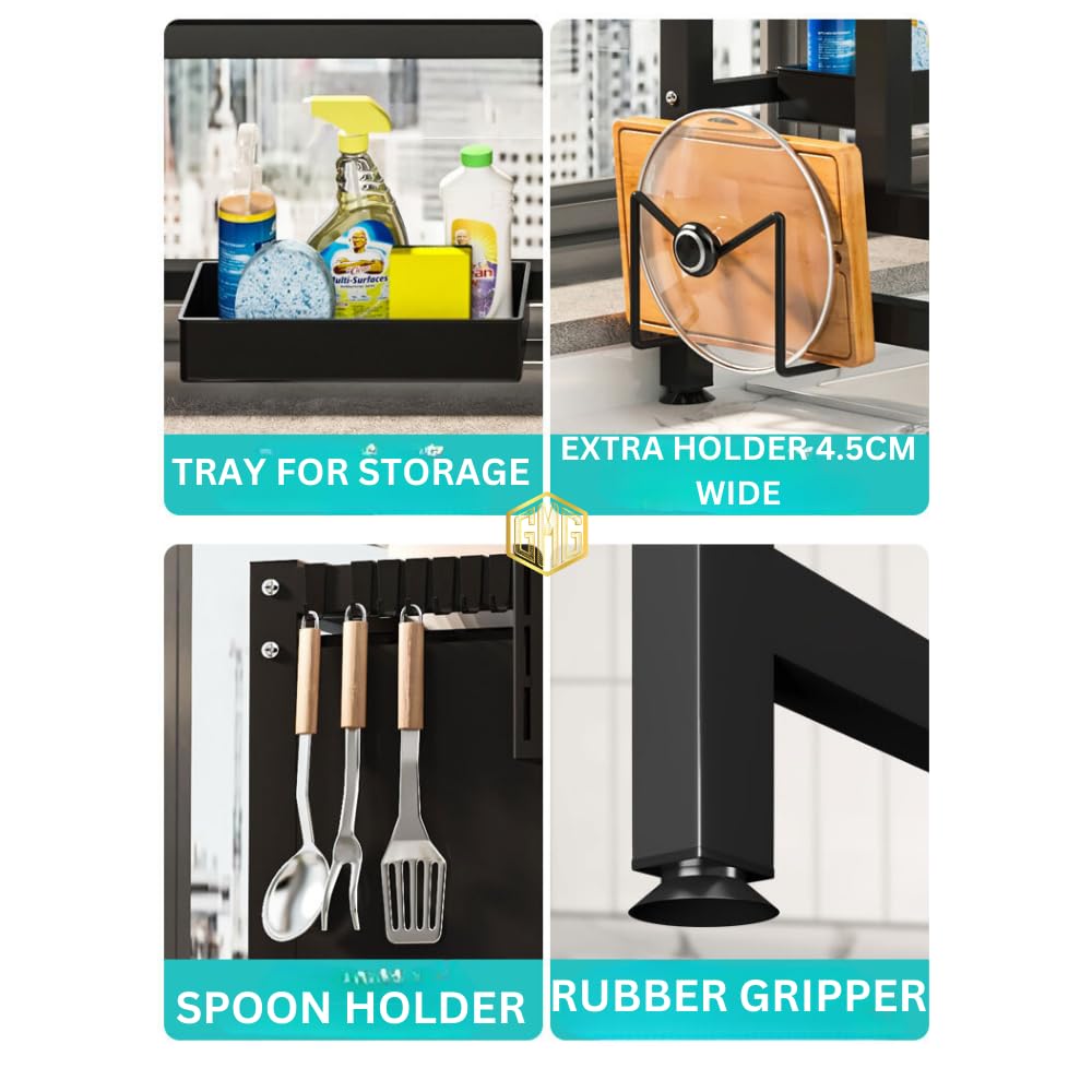 - Double tier extra large capacity design can store almost all your tableware, over sink design will not occupy your counter.