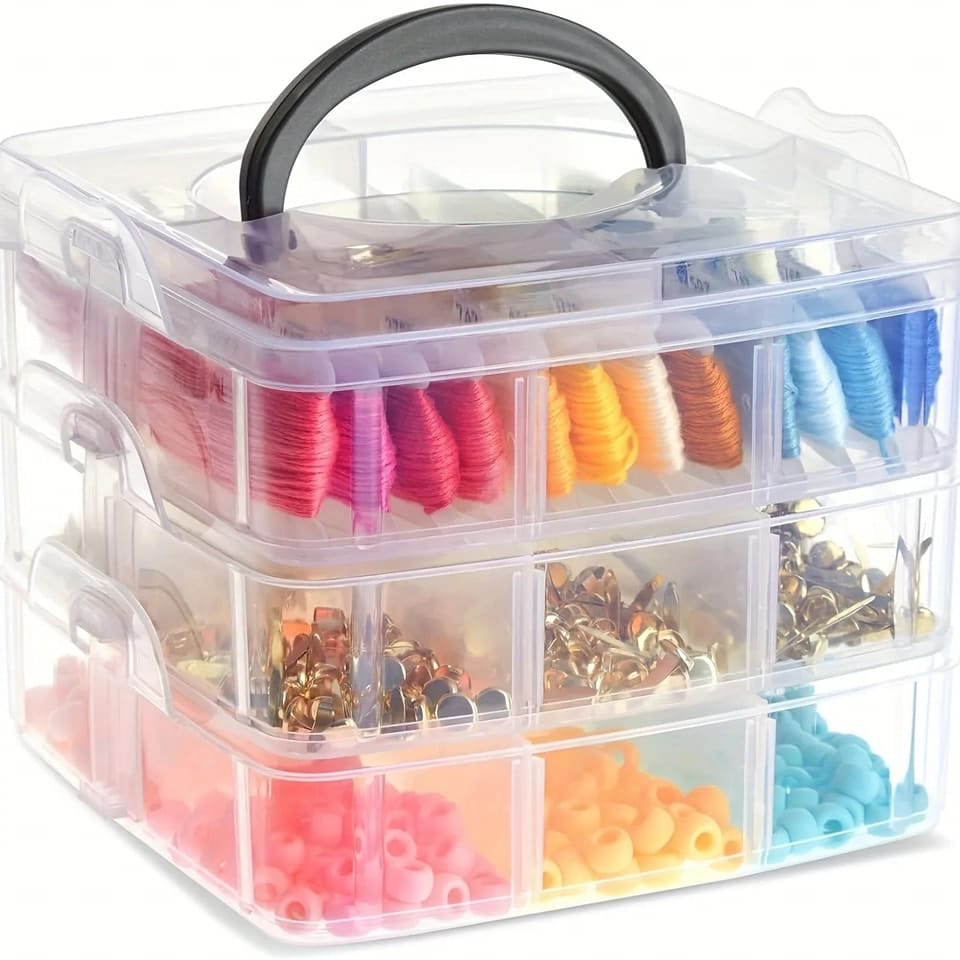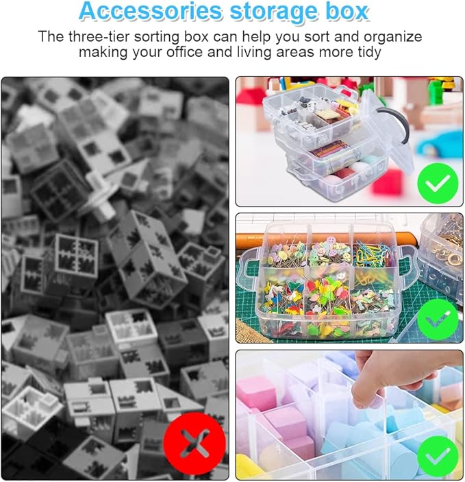 [High-quality plastic sorting box] - The 3-layer plastic sorting box is made of plastic material, which is durable, odourless, safe, dustproof and durable. Each layer of the sorting box can be stacked or separated for easy storage, sorting and use.