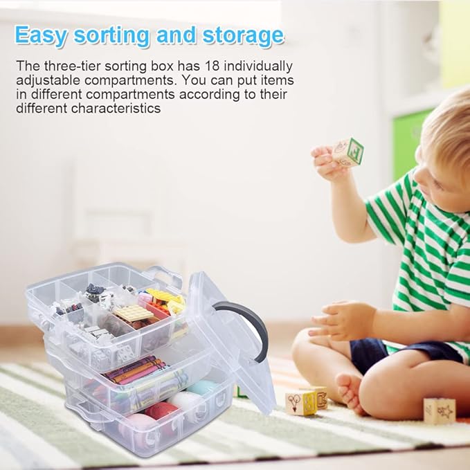 Removable compartments: The sorting box has a total of 3 layers and 18 individually adjustable compartments. The dividers in each compartment can be easily removed. You can adjust the size of each compartment to suit your needs. Ideal for placing small items.