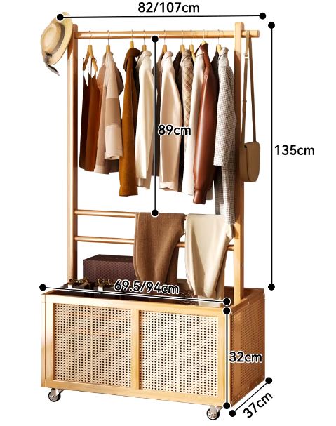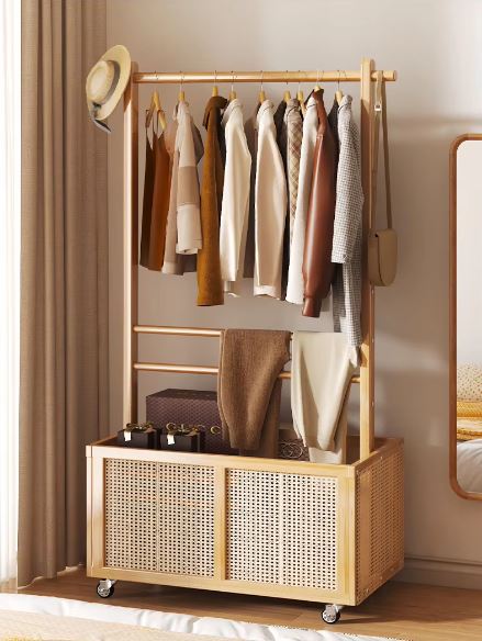 Multifunctional Bamboo Clothes Hanger, Freestanding Bamboo Clothes Rack