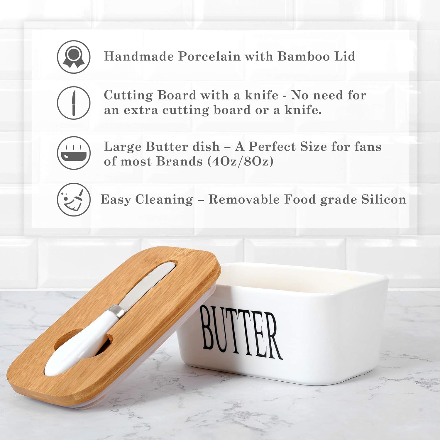 - Secure Lid: Keeps butter fresh and protected.