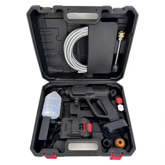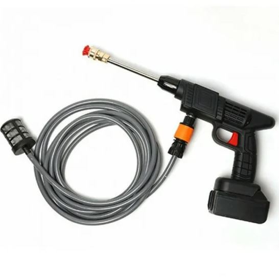 • This cordless high-pressure water gun is more portable than traditional small pressure cleaners.