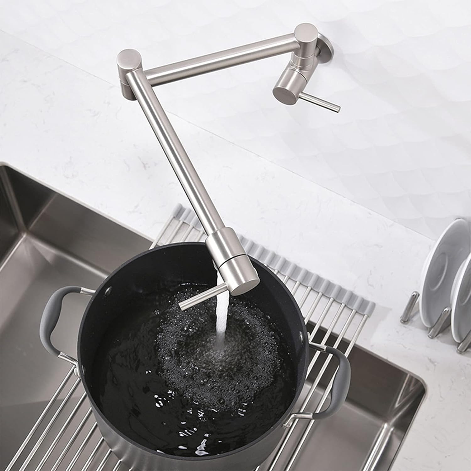 Pot Filler Faucet, Brass Kitchen Faucet Folding Stretchable Wall Mounted Kitchen Sink Faucets with Cold and Warm Water