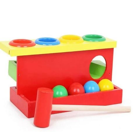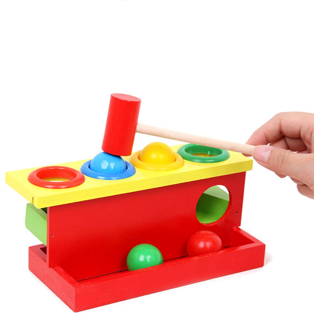 Rolling the Ball Wooden Hammering and Pounding 4 Colorful Ball and 1 Hammer Toy for Kids