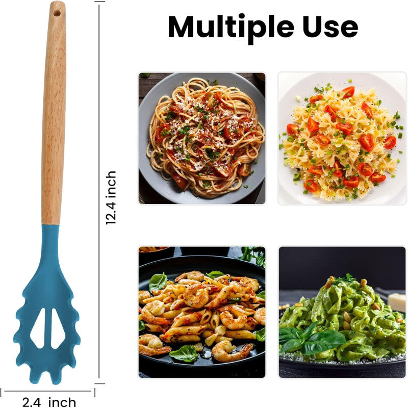 Silicone Noodle And Pasta Spoon With Wooden Handle