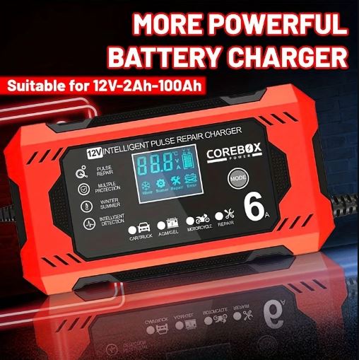 - Suitable for charging and repairing all 12V lead-acid batteries, including AGM, GEL, SLA, and Flooded types, in cars, trucks, SUVs, motorcycles, lawnmowers, boats, and more.