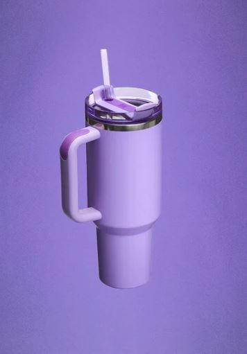 - This 40 oz tumbler comes in a solid purple color and is made of stainless steel and BPA-free plastic, ensuring that it is both durable and safe to use.