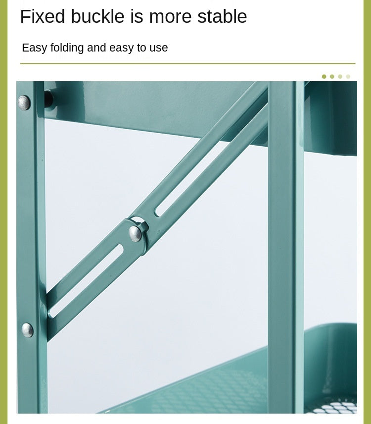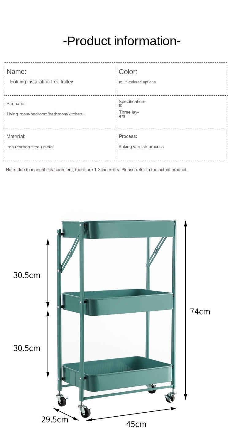 3 Layer Portable Folding Kitchen Bathroom Storage Rack - Folding Utility Rolling Cart Metal (Black).