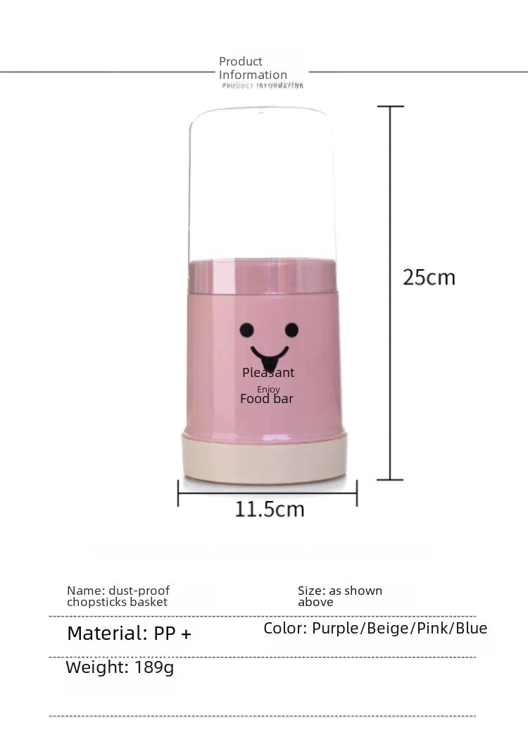 Features: 1. Kitchen drain chopsticks holder, dustproof design with cover. 2. Detachable base, easy to install, easy to remove water and keep tableware dry. 3. Cute cartoon patterns to add fun to life. 4. Round and large-diameter design, easy to take items. Product Name:Storage Rack Material:PP Color: four colors optional Size: 25x11cm