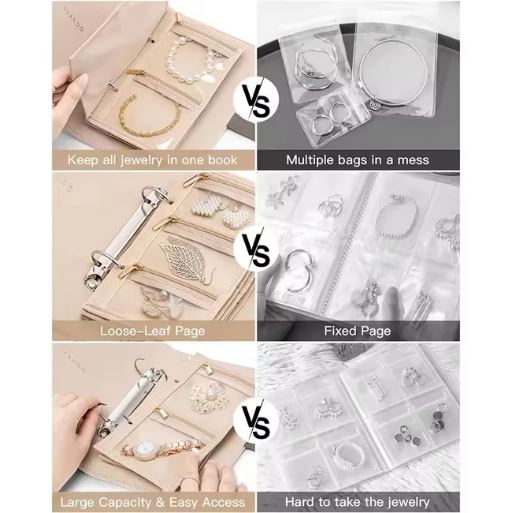 Unique Jewelry Organizer Book, Jewelry Storage Book Ring Binder with Clear Zipper