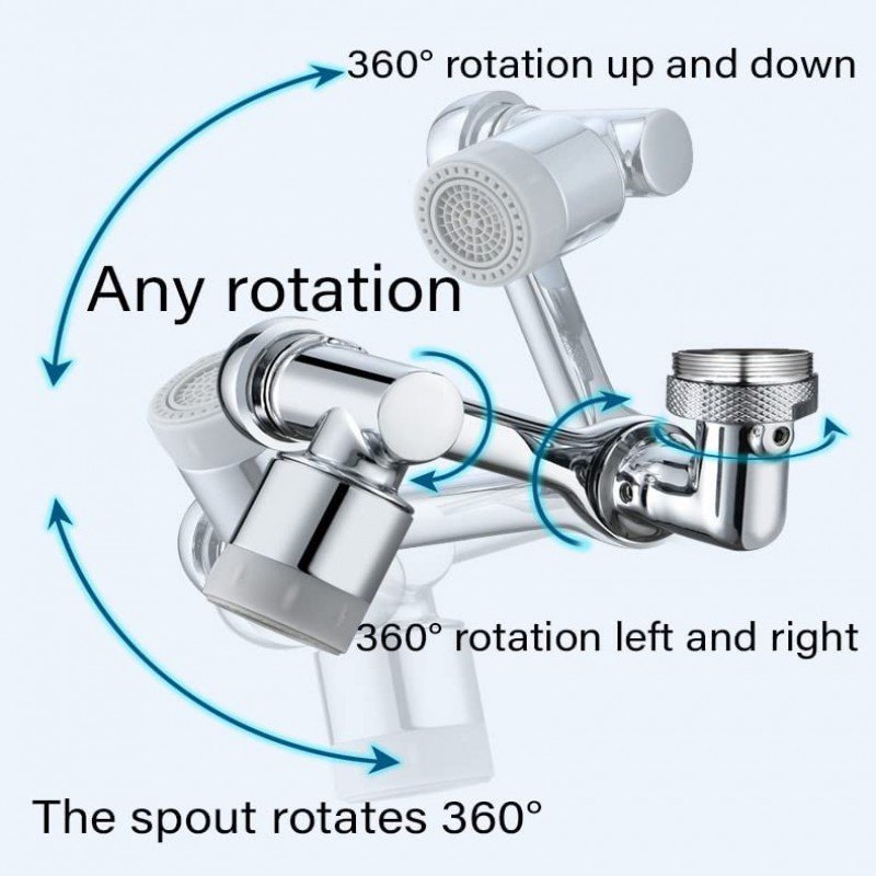 HighlightsUniversal Splash Filter Faucet Tap Rotating. The splash-proof filter faucet can rotate the water outlet 108°(3*360° rotating joints), making it more convenient to wash your face and rinse your mouth.108° Rotating: The splash-proof filter faucet can rotate the water outlet making it more convenient to wash your face and rinse your mouth.Adjustable Water Outlet Modes: ONLY the Dual-Mode version, available in Shower and Foam water outlet modes to meet various washing needs.Easy To Install: No tools required, just make sure your faucet fits the product size and is ready to use, then put the spout into the faucet and screw the bracket clockwise to complete the installation.Leak or Spill Proof: With built-in sealing rings that are watertight for leak proof, take less time to wash up every morning and evening, or to clean the kitchen.Sturdy Material: Made of ABS material, rustproof, durable, long service life, great for home, restaurants, laundry, backyard, and more.Size: As show in picture.Package included:1x pcs faucet.