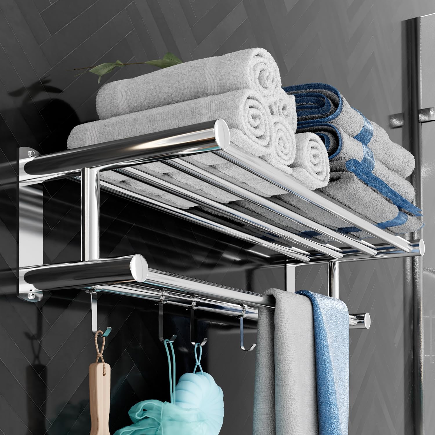 - Ample Shelf space: Our towel rack features a wide and flat shelf design, providing sufficient space for towels, clothes, face towels, aromatherapy bottles, and various other accessories. Keep your bathroom organized while adding a touch of elegance.
