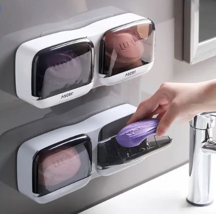 - De-clutter your shower with these liquid-soap dispensers. Each dispenser holds soap, shampoo, lotion, or conditioner in its large, clear reservoir, dispensing it at the press of a button.
