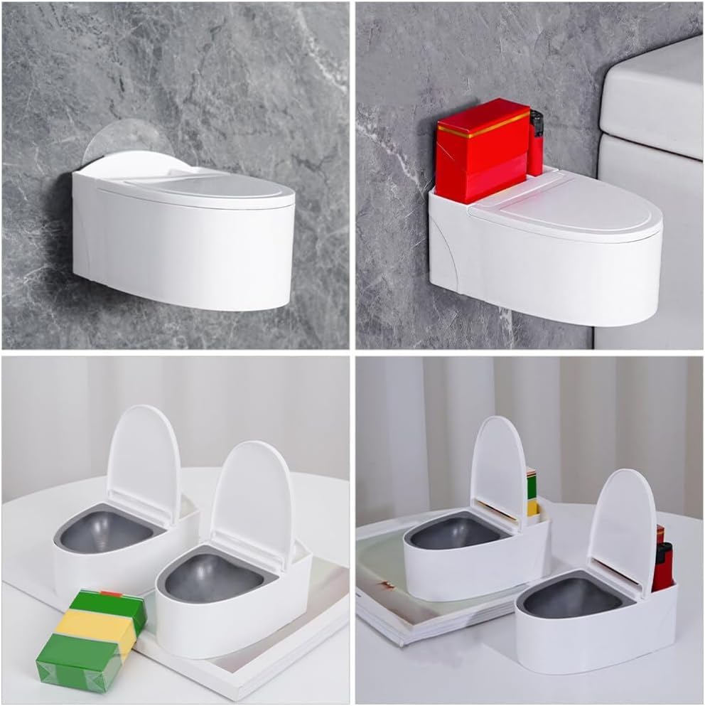 Wall-Mounted Toilet Ashtray with Lid, Creative Bathroom Accessory for Home and Living Room, Plastic