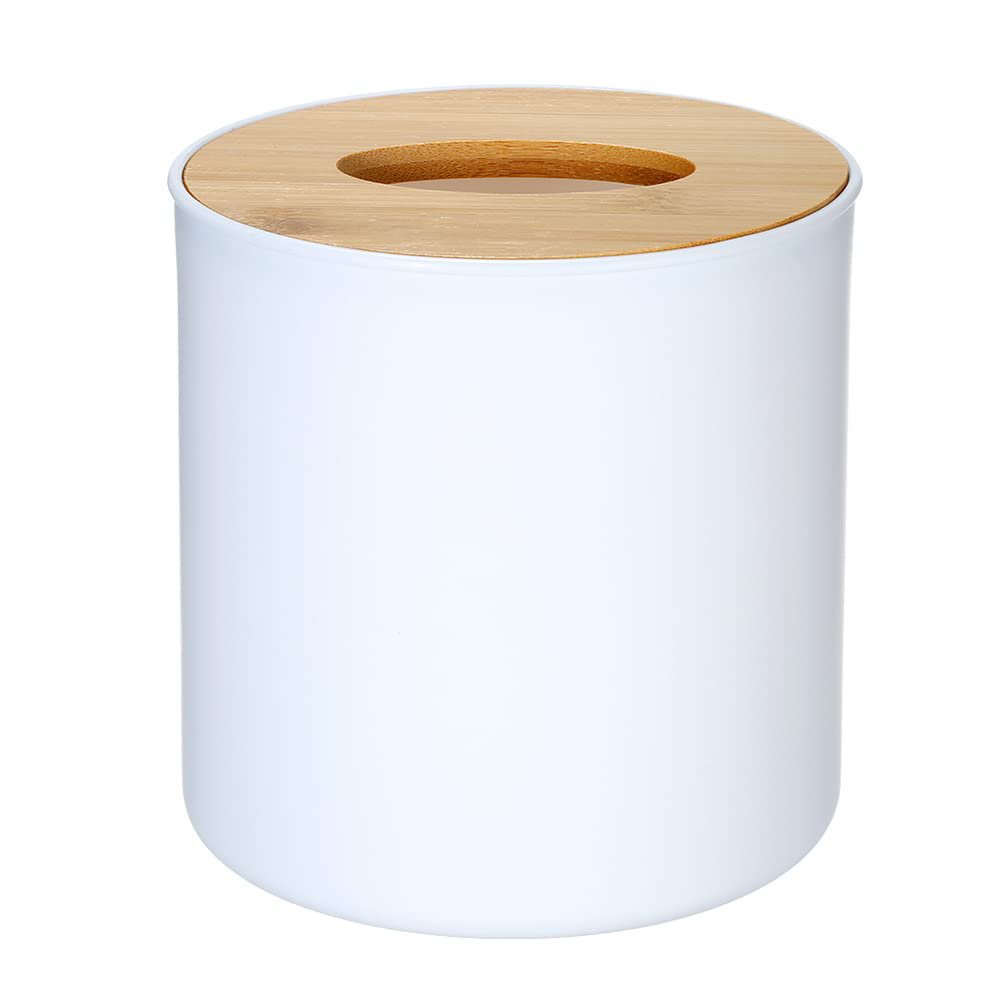Eye-catching contemporary design will look great in your bathroom, living room, and dining room, and kitchen, Conference room, office desk, bedside table etc.Perfect for adding sophistication to your tissue and napkin storage and dispensing needs throughout the house.The slit is wide and placed at the center of the box for more convenience.Modern and simple style, easy to refill tissues with detachable wooden Lid, white container + wooden color cover, so perfect decoration in your home.Made of plastic and bamboo material, it is long-lasting.The length of the tissue box is 13.3cm and the width is 12.5cmPackage Contents : 1 x Tissue Box with Wooden Lid.